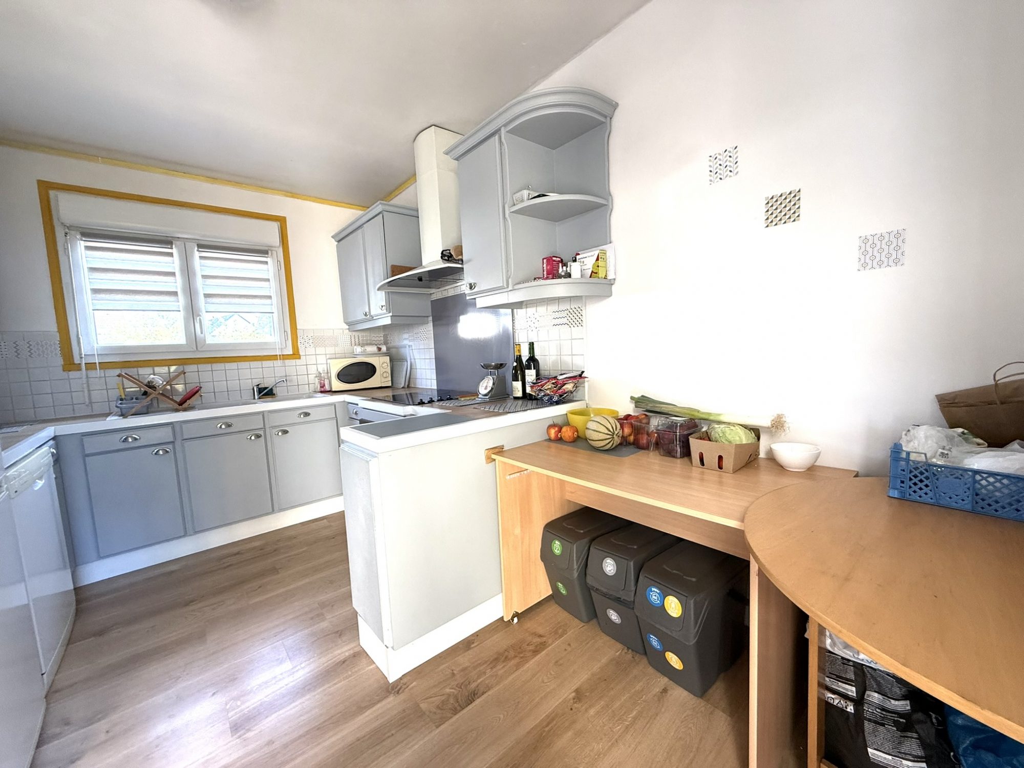 Maison de plain pied, 80 m² habitable env, sur une belle parcelle de terrain, comprenant Cuisine, Séjour Salon, 2/3 Chambres, Salle de bains, WC... Garage, Parking et Jardin...