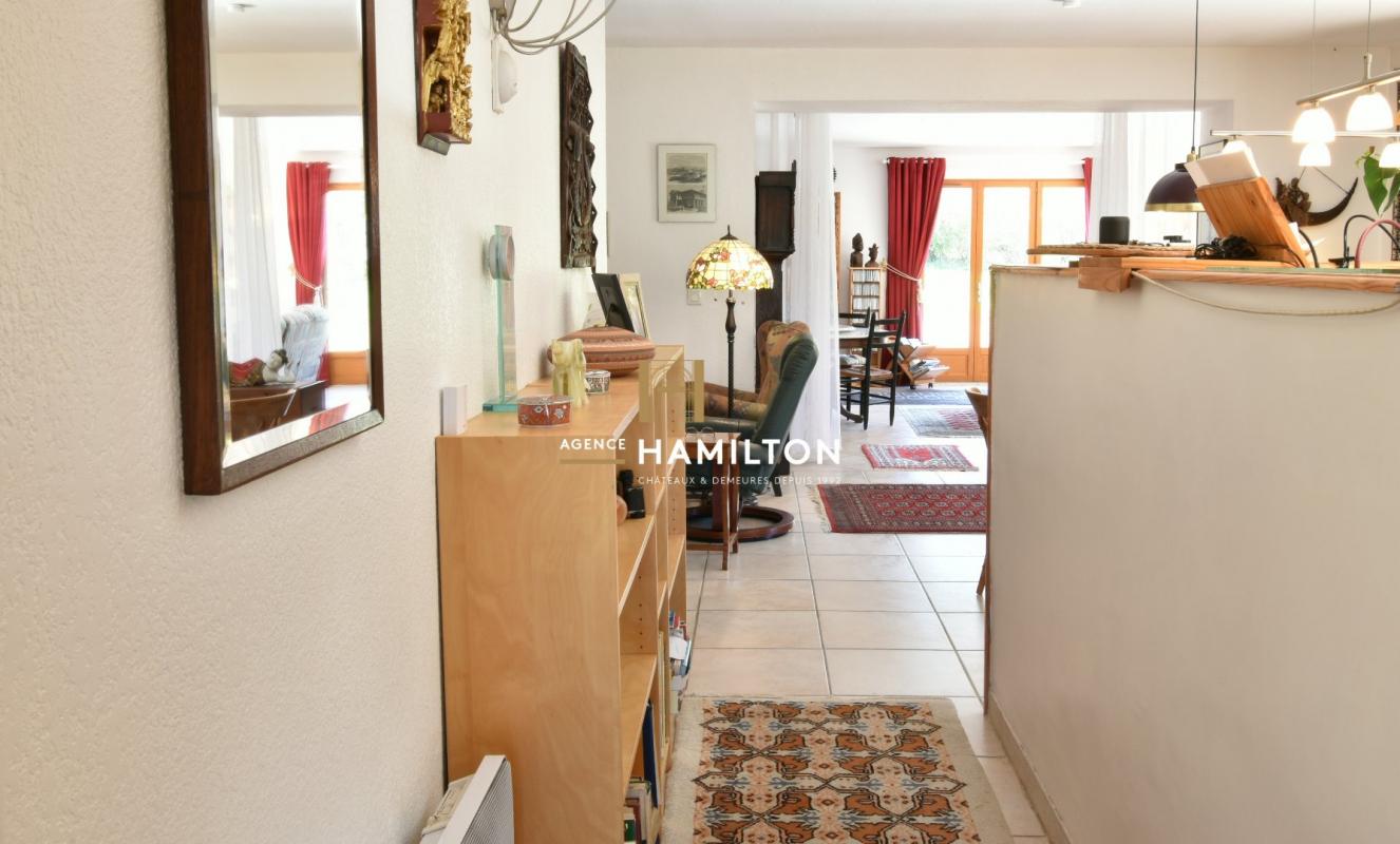 Le c?ur de la maison est son spectaculaire espace de vie ouvert de 75 m². Baigné de lumière naturelle grâce à de larges fenêtres et une immense baie vitrée, il combine harmonieusement un salon chaleureux, une salle à manger spacieuse et une cuisine ouverte entièrement aménagée, parfaite pour recevoir.