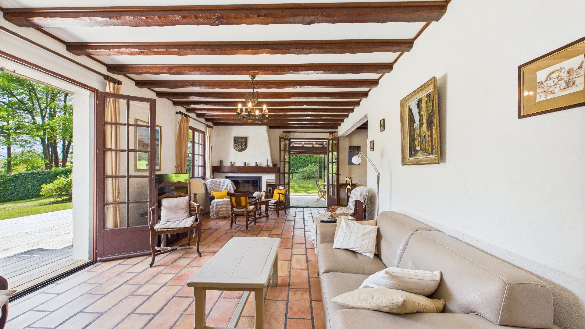 Le rez-de-jardin propose un second séjour ouvrant sur une grande terrasse, une cuisine, deux chambres, ainsi qu'une vaste buanderie. Cet espace, à la fois fonctionnel et indépendant, peut faire office de dépendance idéale pour accueillir famille, amis ou pour de la location saisonnière. Grâce à sa situation en rez-de-jardin, il y règne une fraîcheur très agréable en été.
