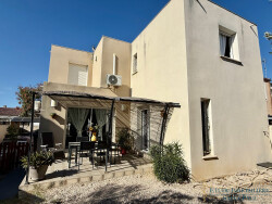 Dans un village recherché et dynamique, à 10 minutes des plages et de Béziers, dans un lotissement une maison neuve de 88.5 m² sur un terrain de 263 m². L'entrée dessert une pièce de vie, le coin nuit offre deux chambres, une salle d'eau une chambre avec salle d'eau et un WC séparé. Un garage, 2 places de stationnement, une garantie décennale de 10 ans et une garantie dommage ouvrage complètent le bien.