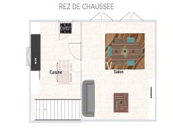 Au rez-de-chaussée ; vous découvrirez un bel espace de vie lumineux de 24m2 et une cuisine séparée aménagée.