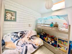 Elle se compose d'une agréable pièce de vie avec cuisine ouverte et équipée, d'un coin salle à manger baigné de lumière et tourné vers l'extérieur, de trois chambres avec rangements, d'une salle de bain et de WC séparés.