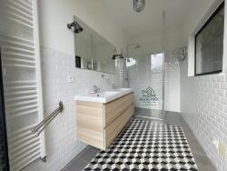 À l'étage, une chambre avec dressing jouxte une salle de bains combinant baignoire, douche et meuble vasque, tandis que la suite parentale dispose d'un dressing, d'une salle d'eau privative et d'un accès à un balcon. Le second étage propose deux chambres supplémentaires et une salle d'eau avec WC. Les combles, aménageables, laissent libre cours à vos projets d'agrandissement ou d'atelier.