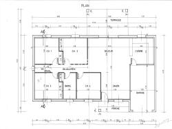 La maison se compose d'une entrée, d'une cuisine équipée ouverte sur un salon/salle à manger lumineuse exposés sud, de WC séparés, de 4 chambres avec placards et d'une salle d'eau.