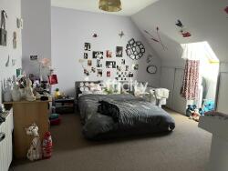 À l'étage, nous avons de belles chambres avec une salle de bain comprenant une baignoire et une douche ainsi qu'une grande salle de jeux de 25 m2 environ. Petit rafraîchissement de peinture à faire à l'étage.