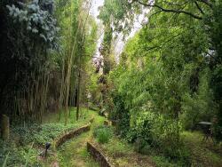 Le terrain arboré de 2 892 m², en partie traversé par un chemin piétonnier, offre un environnement verdoyant et paisible. Vous y trouverez une cuisine extérieure, un four à pain traditionnel, et de nombreux coins ombragés pour profiter des beaux jours.