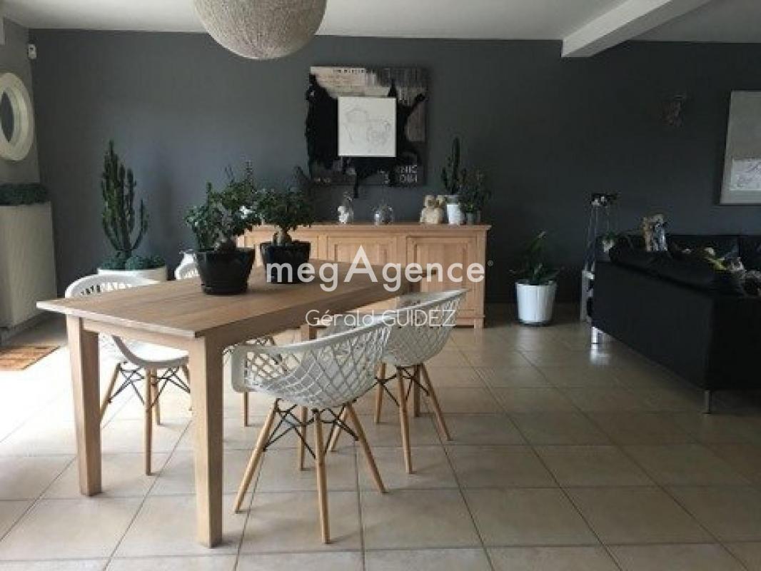 La maison offre un double séjour lumineux avec cheminée, une salle à manger, une cuisine équipée séparée, un bureau en rez-de-chaussée et 4 chambres à l'étage, dont une suite parentale avec climatisation réversible et dressing.
