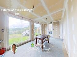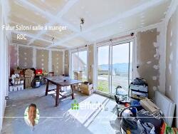 ? RDC : SALON-SÉJOUR lumineux de 30 m² avec deux grandes baies vitrées, une spacieuse CUISINE de 23 m² ( Etat placo + joints, à terminer)