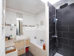 Au rez-de-chaussée, vous trouverez également, une grande chambre parentale, une salle de bains avec douche et baignoire ainsi qu'un bureau.