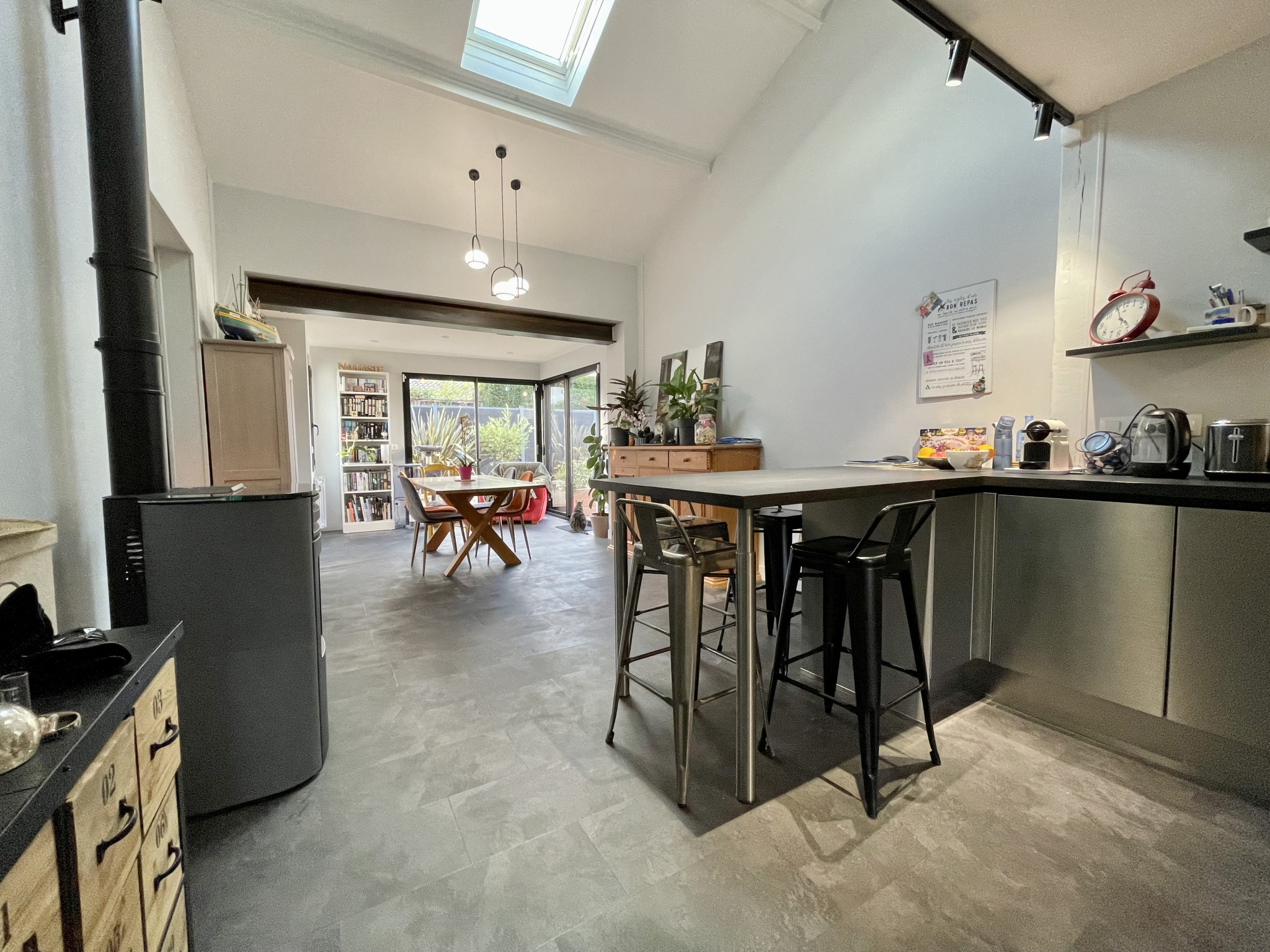 Cette maison spacieuse de 145m² offre un espace de vie chaleureux et lumineux réparti sur deux niveaux. Au rez-de-chaussée, vous trouverez un grand séjour de 26.4m² avec poêle à bois , une cuisine équipée et aménagée , une chambre qui peut être aménagée en suite parentale.