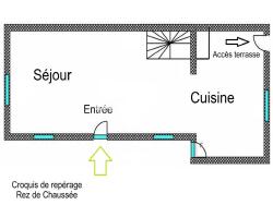 Vous avez un accès au sous-sol aménagé et un accès à la terrasse par la cuisine