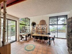 Sur un parc paysager de 3?689?m², Splendide propriété d'architecte atypique de 243?m², incluant 4 chambres dont 1 suite parentale, une Piscine chauffée avec espace Sauna/Jacuzzi et une Annexe T4 générant un revenus complémentaires de 30?35?k€/an.