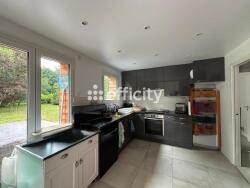 Maison d'habitation avec bardage bois lumineuse comprenant au rez de chaussée : une entrée, un double séjour avec poêle,