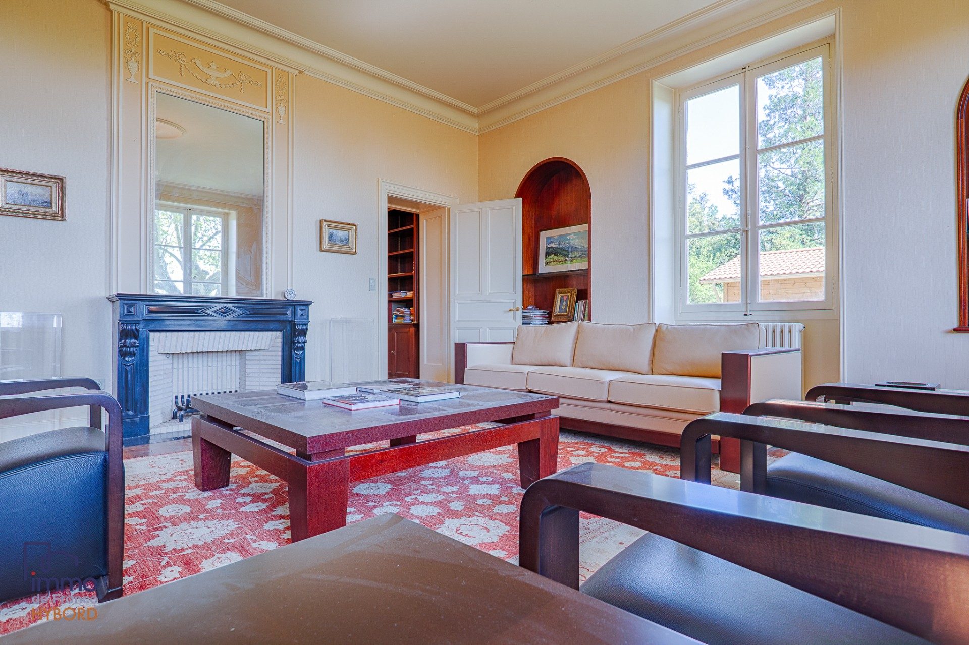 Elle comporte une partie principale d'environ 212 m2 comprenant une grande entrée, une belle cuisine aménagée équipée de 20 m2, une chambre/ bureau avec salle d'eau, wc indépendant et un magnifique séjour de 81 m2 avec poutres apparentes et cheminée et une belle vue sur le parc. A l'étage, un niveau de 4 chambres dont 2 grandes avec 2 salles de bains et une salle d'eau, 3 wc.