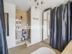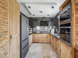 Édifiée sur 2 niveaux, elle offre une belle pièce de vie avec cheminée et une cuisine contemporaine pouvant être indépendante comme complètement ouverte grâce à ses portes coulissantes. A l'étage, un espace nuit composé d'une suite parentale avec dressing et salle de douche de 23 m² au total, deux chambres supplémentaires, une salle d'eau et des sanitaires séparés.