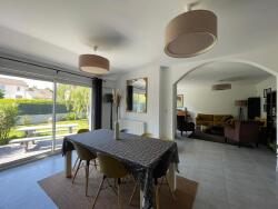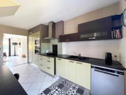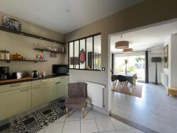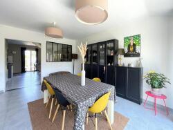 Cette maison lumineuse se compose au rez-de-chaussée d'une pièce grande pièce de vie avec 2 espaces distinctes séjour/salon avec accès sur la terrasse orientée plein sud, une belle cuisine semi-ouverte sur le séjour meublée et équipée, une chambre parentale avec salle d'eau privative, wc indépendant, une grande lingerie/buanderie et une pièce pouvant faire office de chambre, bureau ou idéale pour une profession libérale.