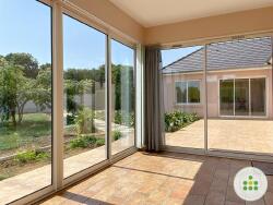 Au rez-de-chaussée, l'entrée mène à un vaste séjour baigné de lumière et sa véranda, une cuisine équipée dinatoire, 2 chambres, une salle de bain et des wc séparés.