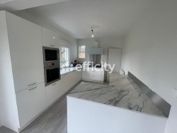 Elle se compose : d'une entrée avec placard, un vaste séjour-salon avec cheminée et une belle hauteur sous plafond, une cuisine équipée ouverte, un cellier-buanderie, trois chambres dont deux avec placards, une salle d'eau moderne avec meuble double vasques, douche, sèche serviettes, un wc séparé et un garage attenant de 16,5 M2.