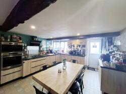 - Au rez-de-chaussée vous disposerez d'une cuisine aménagée et équipée de 22m² avec cheminée à foyer fermé, d'un salon/séjour de 35 m² avec cheminée équipée d'un insert, d'une salle d'eau, d'un WC et d'un atelier/cellier.