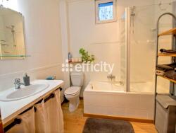 Au premier étage se trouve un grand et lumineux salon-séjour de 38m², une salle de bain équipée de toilettes et d'une baignoire et la première chambre de 14 m² avec son dressing.
