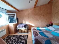 Une chambre confortable et une salle de bain fonctionnelle avec WC.
