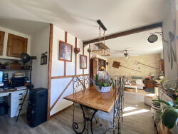 La maison se compose d'une entrée accueillante, d'un spacieux séjour double lumineux avec cheminée, donnant accès à une vaste terrasse exposée plein sud pour profiter de moments de détente en extérieur. Vous y trouverez également une cuisine entièrement équipée, trois chambres confortables, une salle de bains et des WC séparés.