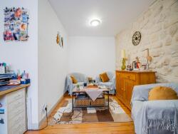 A l'étage, salon très lumineux avec pierre apparente, un grand dressing offrant de nombreux rangements.
