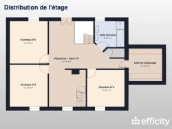 Le palier du premier niveau distribue quant à lui, une mezzanine, un salon/espace détente, 3 chambres, un WC, une salle de bains, une salle de repassage.