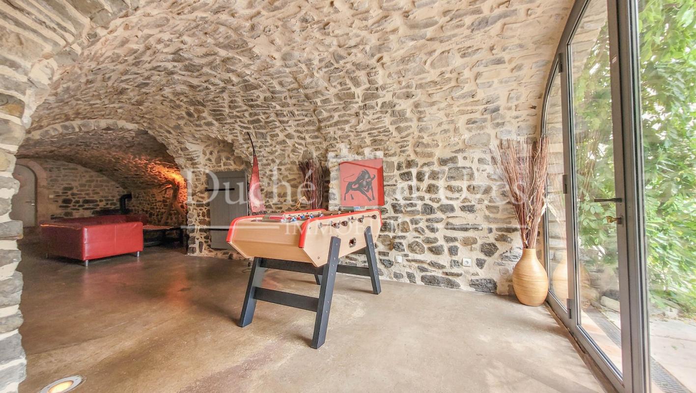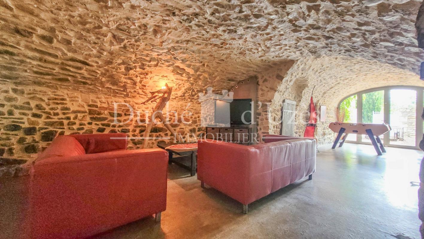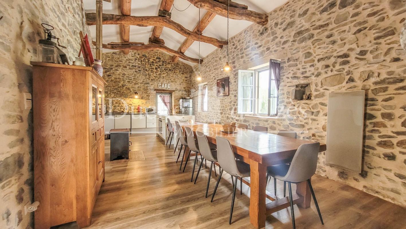 Cette propriété exceptionnelle allie caractère et authenticité, en ayant conservé le cachet de l'ancien. Les plafonds en voûte, les tomettes et la pierre apparente apportent un charme unique à ce mas, dont la première pierre de l'édifice date du XVIIe siècle, témoignant de son histoire riche et de ses éléments architecturaux remarquables. Au rez-de-chaussée, les espaces de vie s'agencent harmonieusement : une cuisine équipée, une salle de billard, un salon voûté chaleureux et cosy, ainsi qu'une salle à manger élégante ouvrant sur une terrasse couverte, idéale pour profiter des superbes extérieurs. À l'étage, trois belles chambres, une salle d'eau et une vaste salle de bains. Au dernier niveau, un palier dessert deux autres chambres de belle taille. En outre, une dépendance offrant un potentiel d'aménagement supplémentaire. Le jardin clos est joliment paysagé et arboré, et une piscine chauffée agrémentent harmonieusement les espaces extérieurs. De plus, une cave et un puits complètent l'ensemble. Une demeure rare dans l'Uzège ! Votre contact Garvi Laura 0616493115 RSAC 849.158.381 à Nîmes.