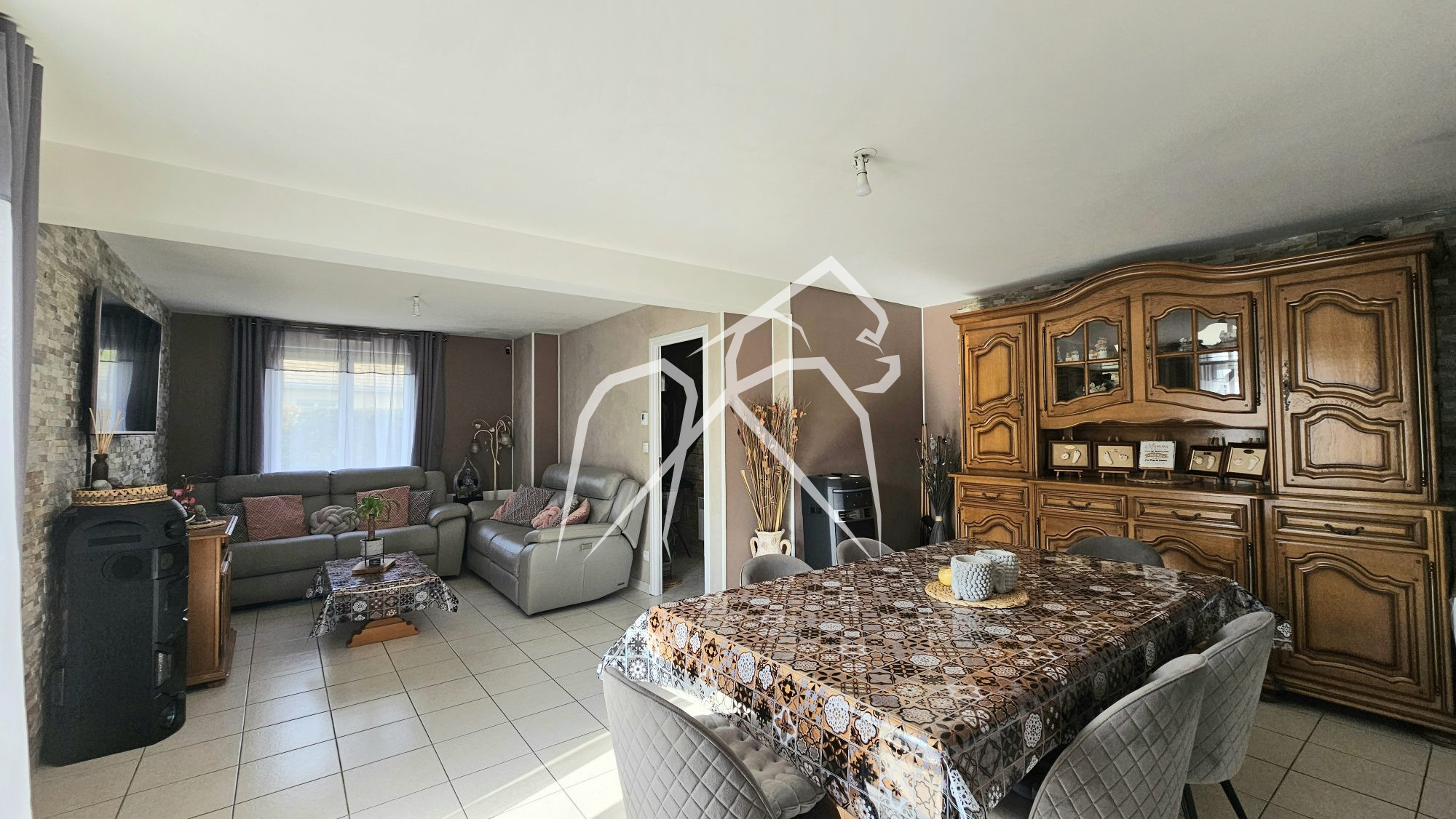 Je vous propose cette maison récente vous séduira par ses espaces bien agencés. Au rez-de-chaussée, vous serez accueilli par une vaste entrée, suivie d'un salon lumineux et d'une cuisine entièrement équipée avec coin repas (possibilité de faire une 5ème chambre, une salle de douche, wc, le tout permettant de vivre de plain-pied. A l'étage, un grand palier mène à quatre chambres lumineuses, une salle de bain et wc. Ce bien dispose en outre d'un sous-sol, d'un grand garage et d'une terrasse, offrant la possibilité d'aménager une cuisine extérieure ou de conserver un abri de jardin. La maison est sécurisée par un système de vidéosurveillance et bénéficie d'un portail et d'une porte de garage motorisés.