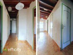 >À L'ÉTAGE, vous transiterez par une LOGGIA de 8m² avant de découvrir un HALL D'ENTRÉE de 7m² agrémenté d'un placard intégré. D'un côté de l'entrée, un SALON/SALLE A MANGER de 27 m² avec poêle à granules et offrant un accès direct à la loggia. De l'autre côté, une CUISINE fermée de 11m². Le hall se prolonge par un COULOIR de 4m² délivrant la zone nuit composée de 2 CHAMBRES de 10m² et 12m² (avec rangements incorporés), d'un WC et une SALLE DE BAIN de 4,3m². La troisième chambre de 11m² fait actuellement office de bureau suite à l'intégration d'un ascenseur.