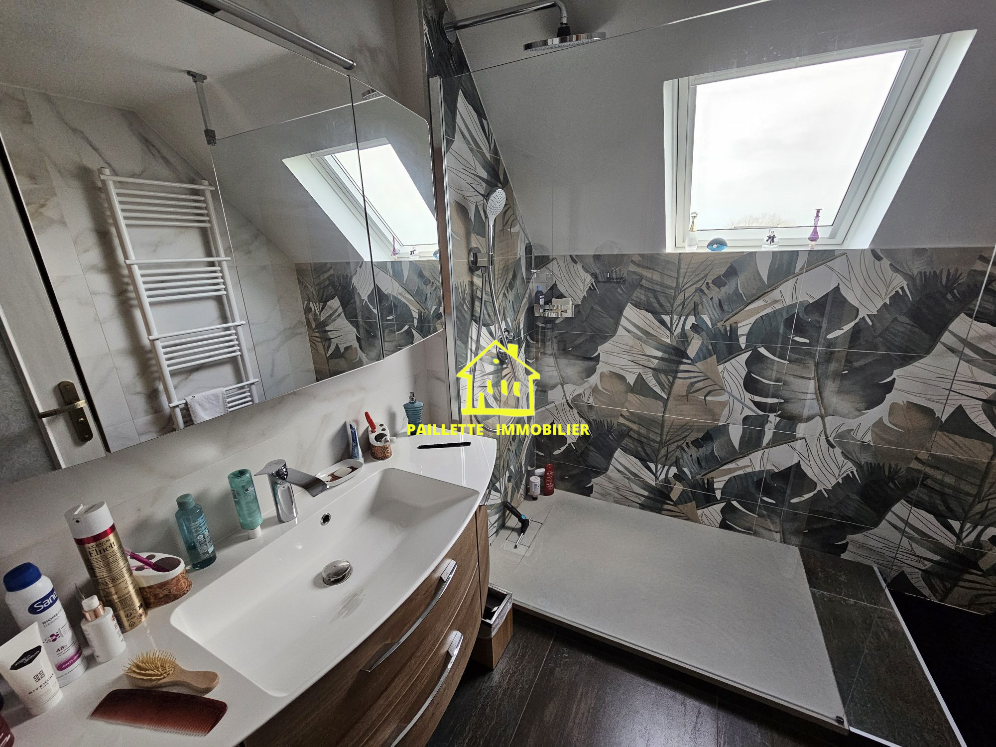 A l'étage, une grande mezzanine de 21 m² (avec placards) dessert 2 grandes chambres indépendantes (pas d'enfilade) dont 1 avec salle de douche privative.