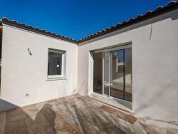 Elle se compose d'une entrée avec un dégagement pour un placard distribuant,la pièce de vie avec 2 baies vitrées qui s'ouvre sur une jolie terrasse carrelée et un jardinet clôturé, Deux chambres de 11 m², un grand dressing de 9m², une salle de douche, un wc indépendant . Une cuisine aménagée va être installée vous disposez d' une buanderie cellier; et d un emplacement pour 2 véhicules ainsi qu'un espace rangement protégé de 20 m²