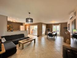 Très belle maison construite avec goût dans un style moderne où le choix s'est porté sur des matériaux de qualité (Maison en Siporex) d'environ 200m² au sol (112m² habitables + 73,5m² de garage + 15,5m² de rangement) le tout sur un terrain de plus de 1600 m² .