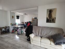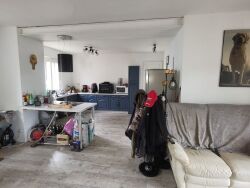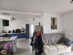 Grande pièce de vie (cuisine aménagée ouverte sur séjour), 2 chambres, salle d'eau / wc.