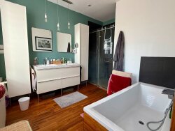 Aux étages vous trouverez 3 belles chambres et une salle de bains,