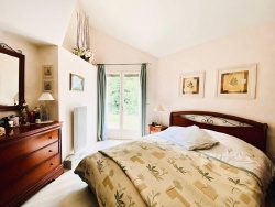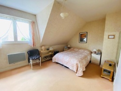 Dans l'extension réalisée en 2002, on accède à une suite parentale ainsi qu'à une chambre avec mezzanine, une belle salle de bain avec douche et des WC indépendants.