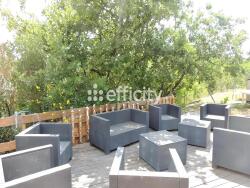 Exposée plein sud, la maison profite d'une belle lumière naturelle. À l'extérieur, une terrasse de 35 m² en bois et un jardin arboré de 1700 m² invitent à la détente.