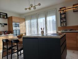La cuisine aménagée sur mesure, très moderne et en même temps très fonctionnelle, saura ravir les amateurs de bel art de vivre.