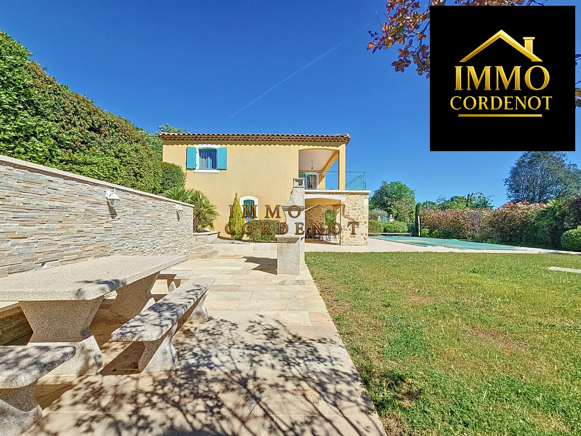 Implantée sur un terrain arboré et sans vis-à-vis, la maison profite d'un cadre paisible et intimiste. La piscine, entourée de sa terrasse ensoleillée, est idéale pour savourer pleinement les belles journées varoises.