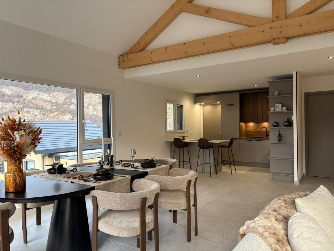 4 chambres, grand séjour avec cuisine ouverte + cellier. Garage + parkings. Belle vue dégagée sur les montagnes. Au calme. A visiter sur RDV.