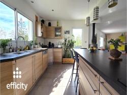 Elle offre 181,82 m² habitables, 268,92 m² de surface au sol, sur un terrain clos et arboré de 825 m². Un bel espace de vie où confort, lumière et volume s'unissent parfaitement.