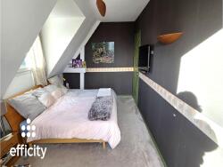 Sur le demi-palier, une belle pièce de 22 m² habitables (39 m² au sol) idéale pour une salle de jeux, une salle TV ou tout projet qui vous ressemble, et une petite chambre ou bureau.