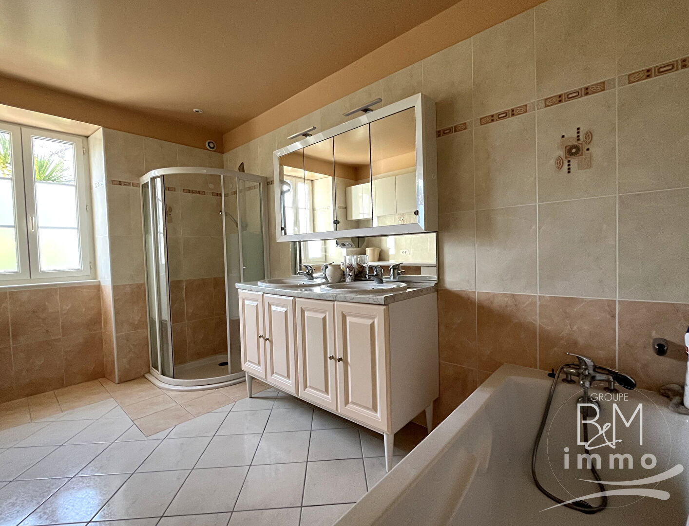 Double vitrage, menuiserie PVC, volets roulants électriques, climatisation et exposition traversante.
