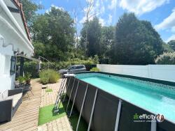 Cette maison édifiée sur un terrain de 350m² se compose d'un premier espace extérieur de 250m² environ avec terrasse et piscine hors sol, une séjour de 25m², une cuisine séparée avec coin salle à manger, 4 chambres dont deux mansardées, deux salles d'eau avec wc. A l'arrière de la maison se trouve un second jardin avec terrasse sans vis-à-vis.