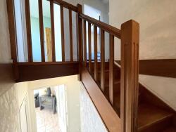 - Étage : Un escalier en bois mène à trois chambres, dont deux avec placards, une spacieuse salle de bain avec fenêtre et un WC séparé.
