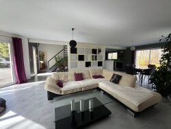 A Saumur, dans un quartier très recherché, maison contemporaine dans un cadre idyllique, au milieu de la verdure et des bois.Une maison avec une très jolie architecture, de plus de 160m² habitables (166m²), un habitat de plain-pied.Un jardin boisé de plus de 3000m².Cette maison vous propose une entrée avec un vestiaire, unwc.Un salon séjour de 50m² avec une cheminée insert, une cuisine toute équipée ouverte sur la pièce de réception, une chambre avec sa propre salle d'eau, un cellier buanderie.A l'étage, 3 chambres dont une avec un terrasse, une salle de bains et de douches wc.Un garage avec une partie grenier.Une construction de qualité ainsi que ses prestations. Très bon DPE.SITE EXTRAORDINAIRE.