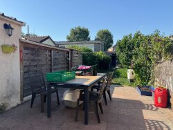 Elle se compose au rez de chaussée, d'une entrée desservant un séjour avec sa cuisine ouverte de 46 m², 2 chambres, une salle d'eau, un WC, le tout donnant sur le jardin avec son cabanon de 20 m²,