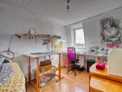 Le deuxième étage est occupé par une première grande pièce passante de 16,5m2, idéale pour un bureau, une salle de jeux ou une chambre d'appoint par exemple, qui vous donnera accès à deux chambres de 10m2 et 10,5m2.
