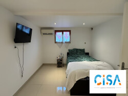 Maison de 145,93 m² sur sous-sol total aménagé Pont-Sainte-Maxence Située à Pont-Sainte-Maxence sur une parcelle de 868 m², cette maison individuelle dispose d'une surface totale de 145,93 m², répartie entre 90 m² habitables de plain-pied surélevé et un sous-sol totalement aménagé de 55,93 m². L'agencement se définit comme suit : Rez-de-chaussée surélevé : Une entrée desservant un salon-séjour, une salle à manger et une cuisine indépendante aménagée et équipée. La partie nuit comprend deux chambres, une salle d'eau et un WC indépendant. Sous-sol total aménagé : Ce niveau dispose d'une entrée secondaire, d'un palier bureau, de deux chambres (dont une avec un grand dressing) et d'une salle d'eau avec WC. Combles : Un espace aménageable au premier étage permet de créer environ 25 m² habitables supplémentaires. L'ensemble de l'habitation nécessite des travaux de rafraîchissement et de mise au goût du jour. Performances et équipements : Le bien bénéficie d'une isolation thermique par l'extérieur (ITE). Le chauffage est assuré par une pompe à chaleur air/air complétée par un poêle à granulés, conférant à la maison un excellent classement au diagnostic de performance énergétique (DPE). À l'extérieur, le terrain de 868 m² est clos par un portail automatique et permet le stationnement de trois véhicules.